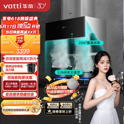拥有23立方大吸力,翻转油网设计,顶侧双吸,轻松吸净油烟。挥手感应零触碰,使用起来非常轻松,下厨不再手忙脚乱。