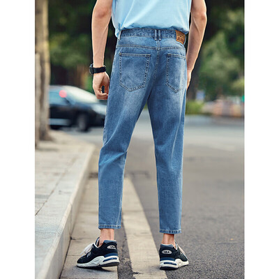 猫须纹点缀裤子,增加时尚感。使用科学的裁剪方式,使裤子与人体更加契合,穿着更具舒适感。全棉牛仔布材质,裤子耐磨不易皱折。
