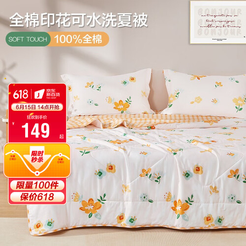 选用高支高密的全棉面料,健康印染,触感舒适,适合裸睡,AB双版撞色设计,花型小清新,温馨陪伴你每一晚睡眠。