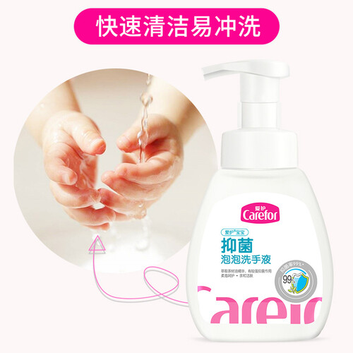 这款泡泡洗手液加入茶树油精华,让宝宝洁净双手的同时,还能保湿滋润手部肌肤,另外挤压式泵头设计,使用更方便。