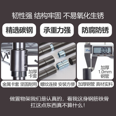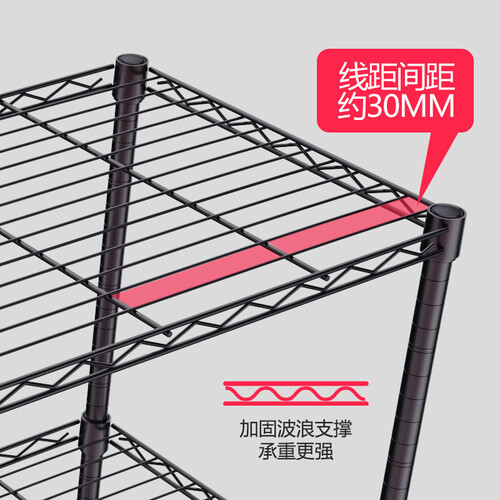 加粗加厚的碳钢,配以三角力学设计,增强了置物架的承重和稳定性。多层隔板,层高可随意调整,分层置物,是您空间整理的好帮手。
