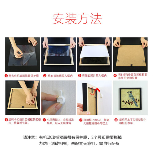 选用无结疤实木材料,纹理清晰,线条流畅优美,增添了美感,搭配高透光率面板,不易碎也不伤手,十分适合存放照片。