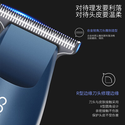 刀头与皮肤接触一面采用R型设计,防止刮伤头皮,使用更安全。支持USB充电,随时随地都能完成充电需求。