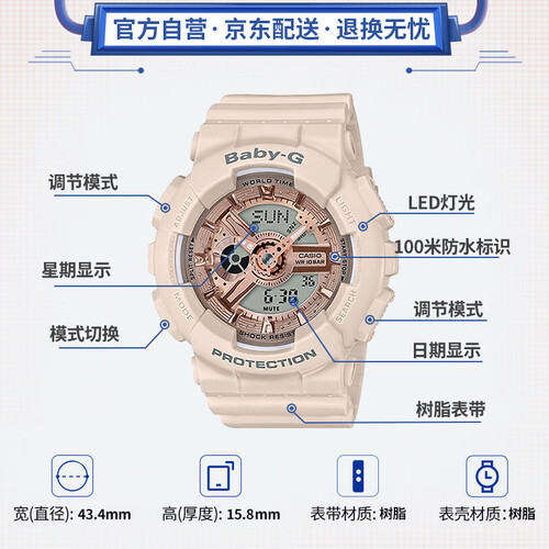 简洁大方的条形时标,并且附带有星期显示盘。手表具有100米的生活防水功能,在平时使用的时候可以无惧泼进水。