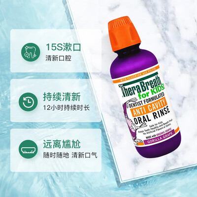 儿童专用的葡萄味道的漱口水,味道不刺激,小朋友更容易接受。同时可以坚固牙齿,有效的预防蛀牙的产生,保持口气的清新。