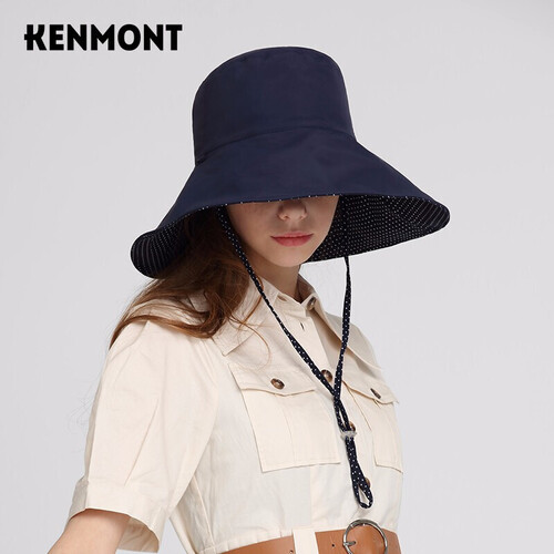 宽大的帽檐,达到修饰脸型的效果,衬托脸部线条。波点与光面的个性内外面,摆脱单调,充满设计感。