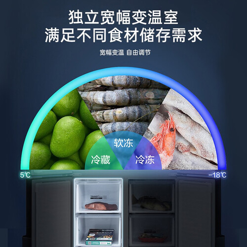 黛蓝灰的传统颜色与灰色经典线条相搭,勾勒出现代时尚的眼光,助你遇见经典与未来。高端保鲜科技延缓细胞新陈代谢,留住营养。