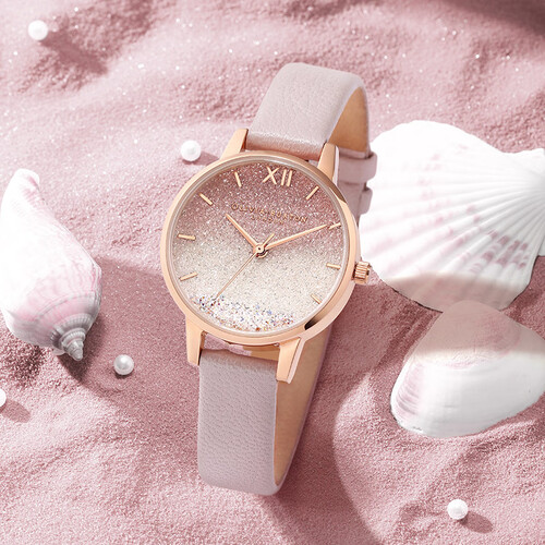 流动仿水晶元素设计的表盘,极具创意个性,光芒璀璨夺目,样式甜美浪漫,展现你的迷人气质。矿物质玻璃镜面,防刮性强。