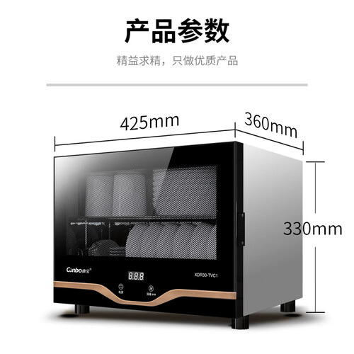 采用了迷你的消毒柜规格,摆放起来不占太多空间。其柜门采用了双重钢化玻璃打造,质地坚实防爆裂,使用起来安全放心。