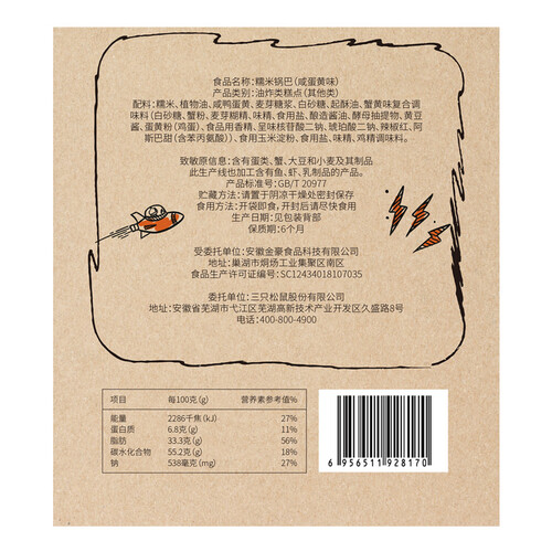 这款锅巴选用优质的原料,先炸后烤的双重工艺,更加美味,给你独特口感,满足你挑剔的味蕾。