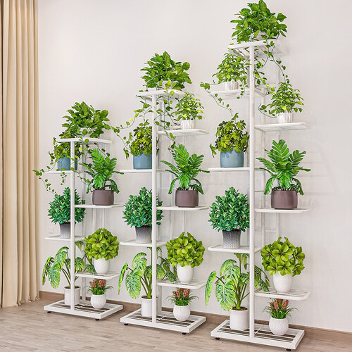 花架采用金属材质塑造而成,管材经过加粗处理,承重能力更加出色,长久使用不易变形。多层设计,储物量更大,收纳更加方便。