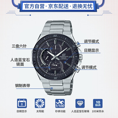 以太阳能为运转动力,持久稳定,告别了频繁更换电池的烦恼。人造蓝宝石打造的表现通透度高,读时清晰的同时耐磨防刮滑。