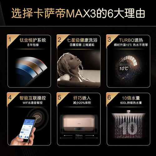 采用创新全效阻垢科技,可避免内胆生成水垢,水质更好。具有10倍大水量,全家人使用无负担,能够满足家人用水需求。