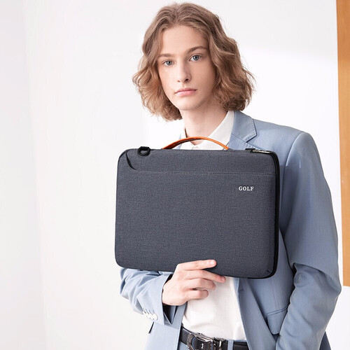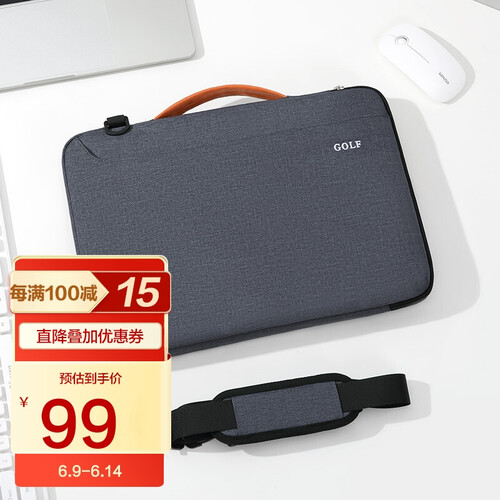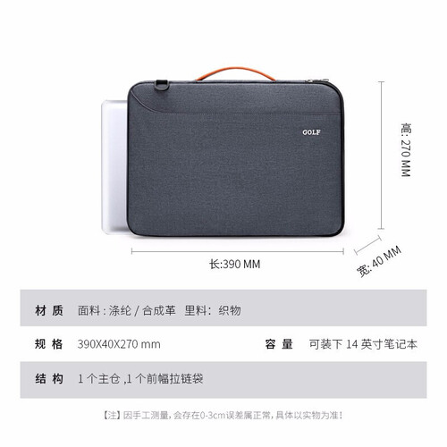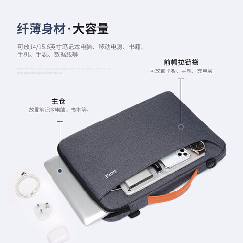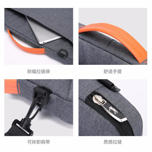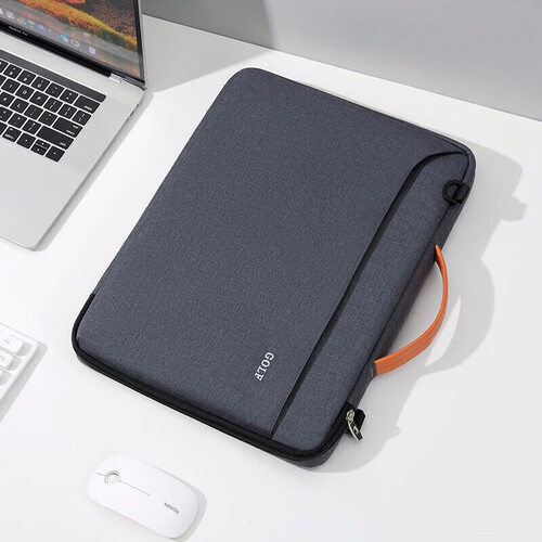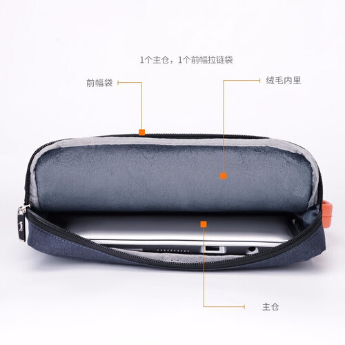 能用涤纶面料打造而成,具有防泼水、防刮等多种优点,更加耐用。绒毛内里设计,具有一定的减震效果,呵护电脑更安心。
