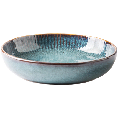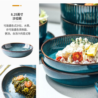 复古窑变釉工艺,凹凸竖条纹,手绘描边,手绘醇厚,造型规整,简约大气,圆润边口设计,手感细腻舒适。