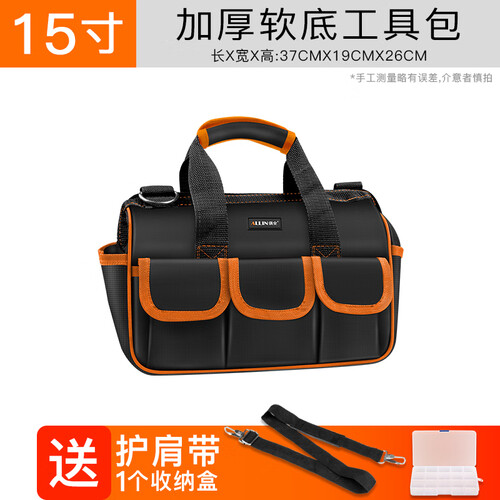 采用高密度牛津布制作,外加防水涂层,耐磨耐用,适合专业师傅使用。自带8个外置插袋和8个内置插袋,能收纳大量工具。