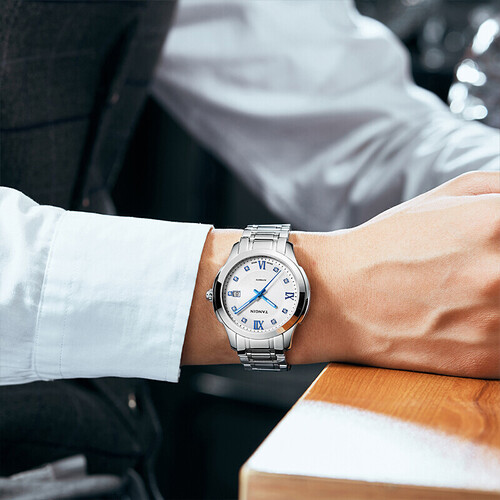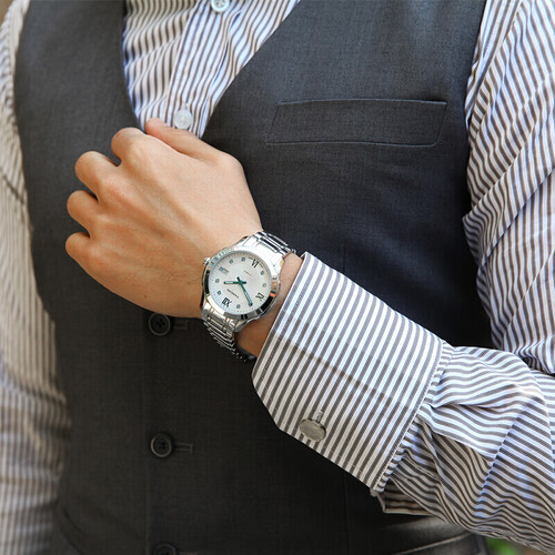 表盘采用简约的纹理设计,并且时符镶嵌9颗锆石,让手表在拥有低调的气质同时可以绽放出耀眼的芳华。