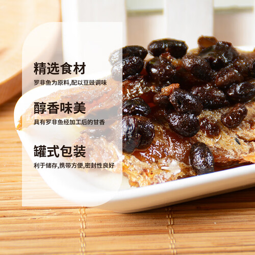 将新鲜鲮鱼和豆豉融为一体制作的鱼罐头,口感鲜美滋味浓郁,吃一口就让人难以忘怀。方便速食的设计,开盖可直接食用。