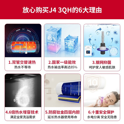 3000W和2000W双管交替加热,可提高冷水加热速度,洗澡不用长时间等待。具有无线遥控功能,调温更方便。