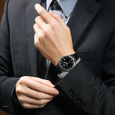 30米生活防水设计,可抵抗汗液和少量溅水,使用安全。阿拉伯数字时标,与条钉刻度相间,巧妙增添儒雅气质。