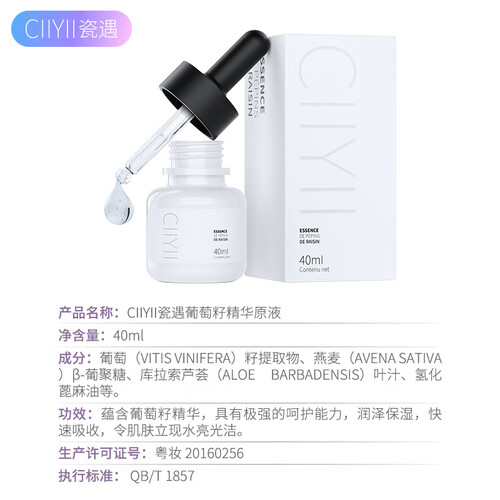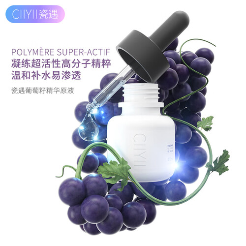 瓷遇的这款面部精华,蕴含葡萄籽精华,具有极强的呵护能力,润泽保湿,能快速吸收,令肌肤立现水亮光洁。