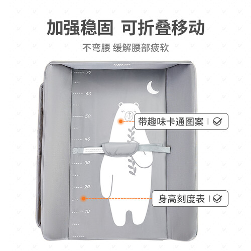 拥有5大实用功能,换尿布衣物、收纳储物、按摩护理、洗澡擦身、晾衣架等,耐用不闲置;带移动万向轮,从房间到客厅,轻松移动。
