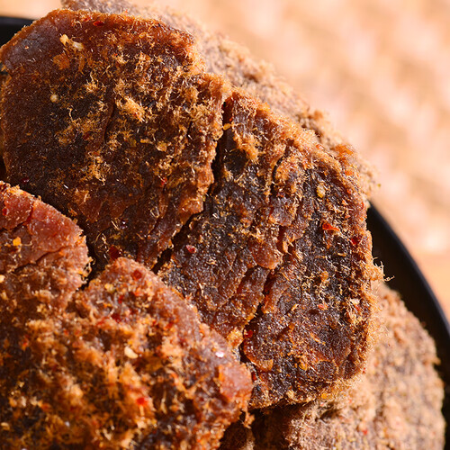 精选牦牛肉制作,肉质纤细嫩滑,含有丰富的营养物质。经过多道秘制工艺,严格把控生产关,保障牛肉干品质上乘。