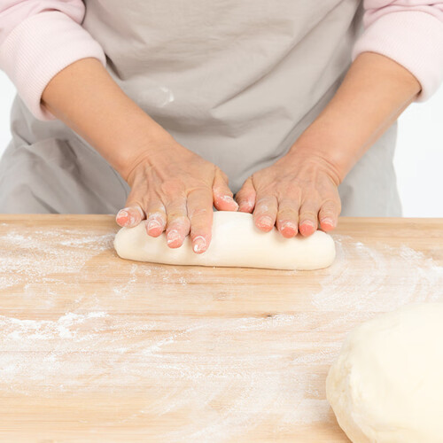 高筋小麦减少研磨次数,保留更多麦芯精华和营养,面粉呈细小而均匀的颗粒,吸水率高,揉面不易粘手,面团紧实而柔韧,醒发更快。