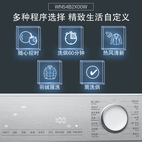 洗衣机具有隐形触控屏,看起来简约大气,反应十分灵敏。具有磁感旋钮,轻松一旋调节洗衣模式,操作起来简便快捷。