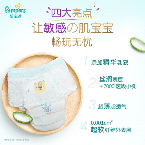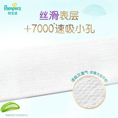 日本原装进口工艺,含天然芦荟成分,呵护宝宝敏感肌肤,告别红屁屁。10000+呼吸微孔,内外表层轻柔透气,给宝宝贴心呵护。