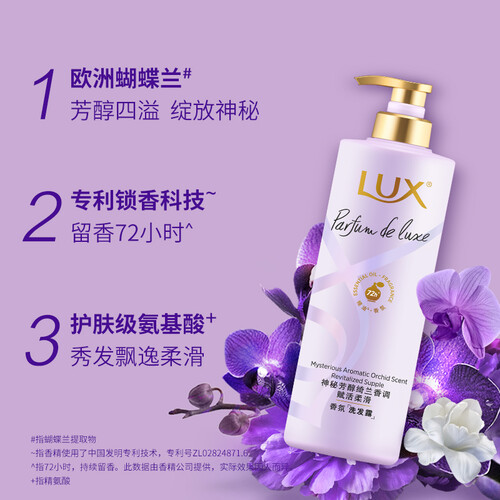 蕴含欧洲蝴蝶兰精华,修护受损发丝,令秀发弹润迷人,并且采用凝萃科技,48小时长效留香。