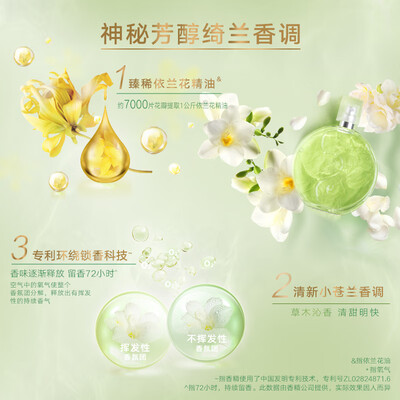 携手法国调香大师打造,清新沁爽的小苍兰香调,犹如记忆中的夏日气息,细腻水灵;香味逐渐释放,能长效留香72小时。