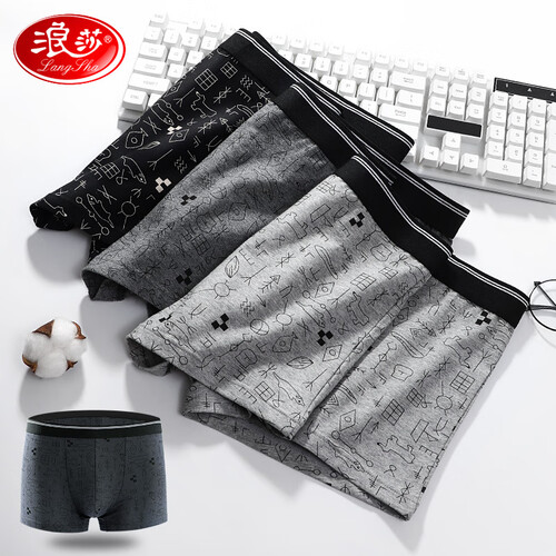 浪莎 抗菌透气平角中腰内裤