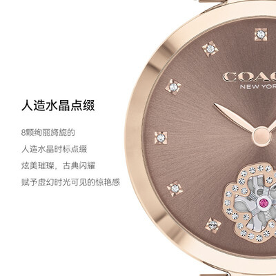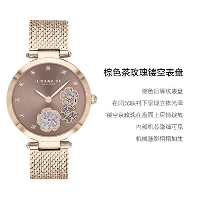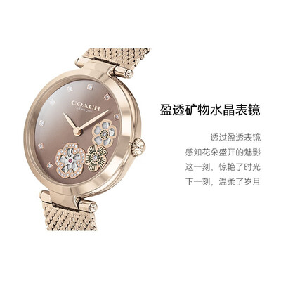 采用玫瑰金色搭配,彰显华丽韵味,佩戴上更显肤白,凸显纤巧手型,让你出街气质更优雅。表底印有品牌标识,凸显品牌地位。