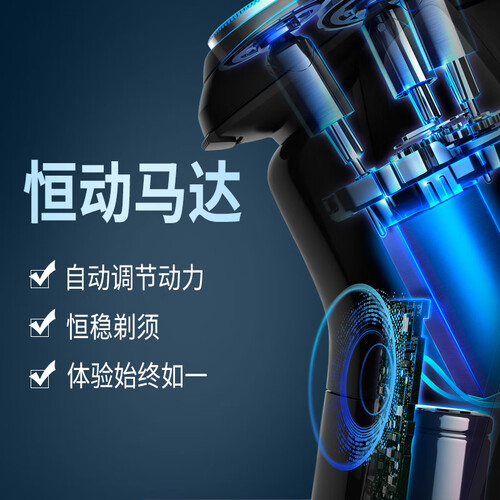 智能恒控马达,动力强劲,运行持久稳定,有效减少胡须拉扯,无刺痛感。五维浮动刀头,贴合面部轮廓,剃净无死角。