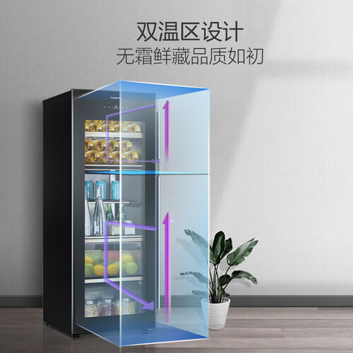 192L海量空间,食品饮料通通纳入。双温区设计,储酒、冷藏区分别设计专属送风通道,快速制冷不结霜。