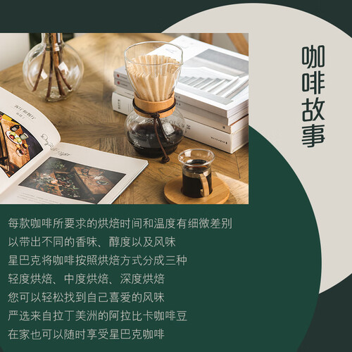深度烘焙的浓缩咖啡豆,带有焦糖的香甜味。浓厚又独特的风味,让你想起星巴克意式咖啡的熟悉风味,在家就能享受美味。