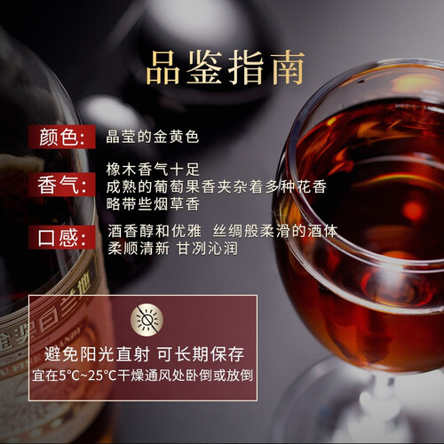 精选优质葡萄,特种方法蒸馏陈酿而成,酒液金黄,清新怡人,优雅细腻,入口芬芳,回味无穷。