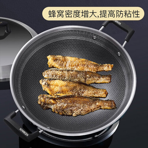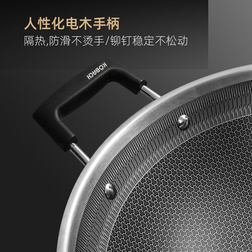 锅体采用蜂窝结构设计,凸凹纹理能均匀分散热量,防止食物粘黏,清洗更方便。锅体经蚀刻工艺处理,耐磨耐用。