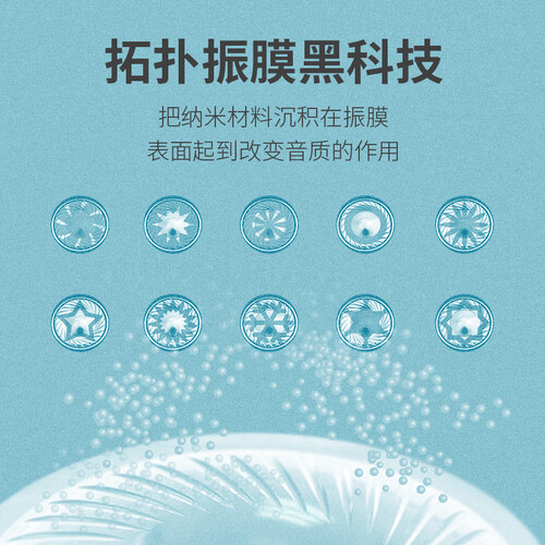 蓝牙5.0的连接技术,几乎是刚打开就能秒速连接,让你无须等待便能听到音乐。拓扑振膜的黑科技,可以起到改变音质的作用呢。