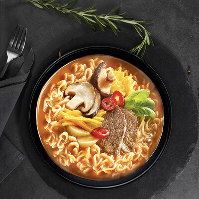 醇正鲜香的猪骨高汤粉包,加上劲道面条和丰富的菜包,带来幸福享受。PP材质的碗体设计,可在微波炉加热,料理更方便。