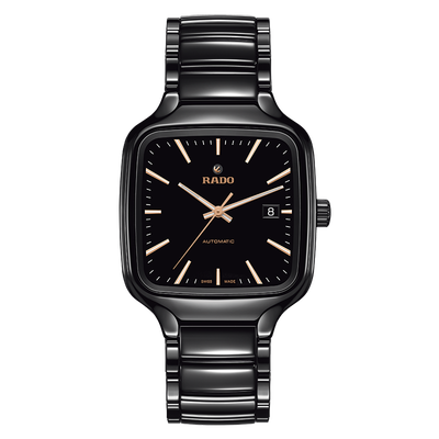 方形表盘设计,佩戴黑色基调演绎,风格简约大气,而且不失优雅复古魅力,表带以高科技陶瓷打造,触感温润细腻,十分舒适。