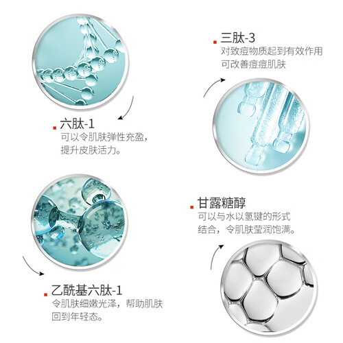 萃取了多种胜肽成分,可以紧致粗大的毛孔,修护受损的痘痘肌,可以柔嫩肌肤深度的保持肌肤的水润,让您的肌肤更加的紧致。