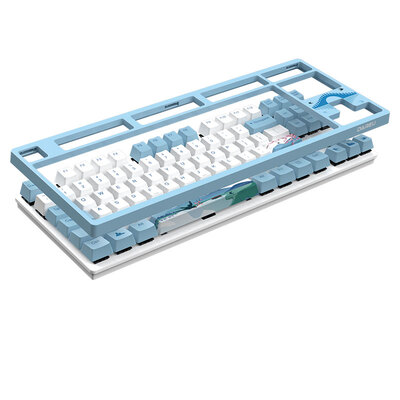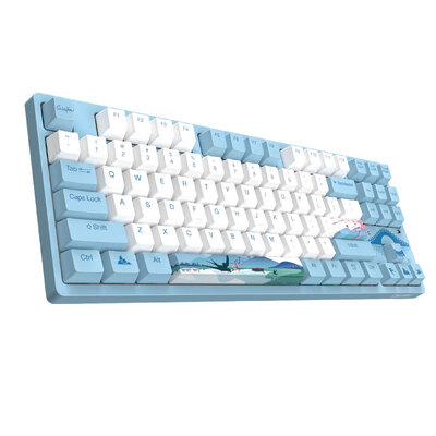 采用了87键的布局,更显小巧轻便,便于携带。并且空格、shift键采用卫星轴结构,确保敲击手感更平稳。