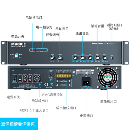 独立的音量控制技术,根据自身的需求,调节适宜的音量。内置过载短路保护技术,减少隐患的产生,安心使用。