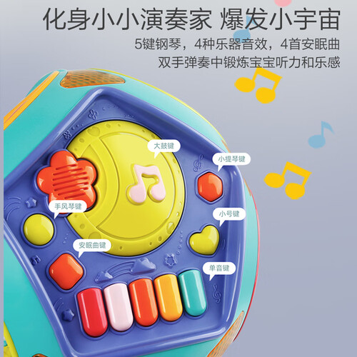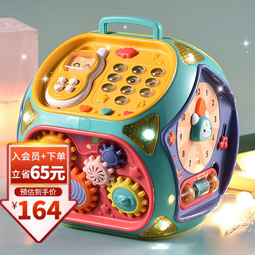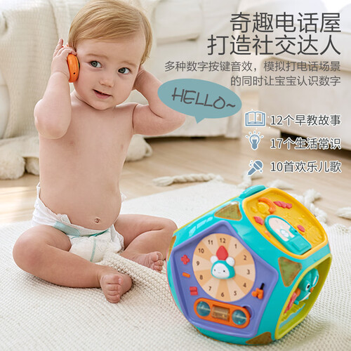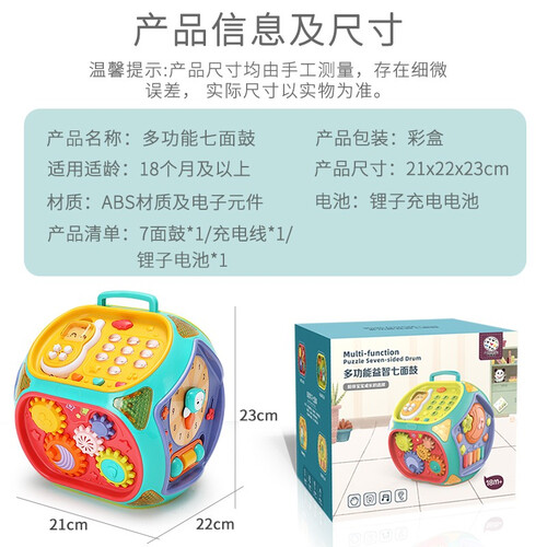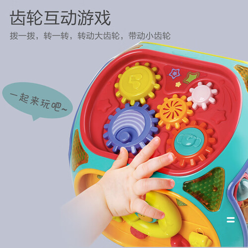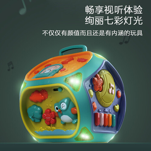 七面玩法融为一体,乐趣多多,久玩不腻。配合缤纷色彩设计,刺激宝宝视觉发育。拥有贴心的手提式把手设计,方便移动,随处可玩。