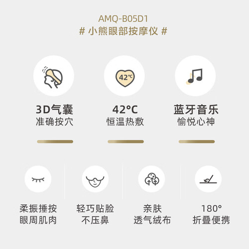 这款眼部按摩器比较轻巧,刚好的贴合脸部,避免压迫感,才有3D气囊柔振眼周肌肉,深层放松非常舒适。