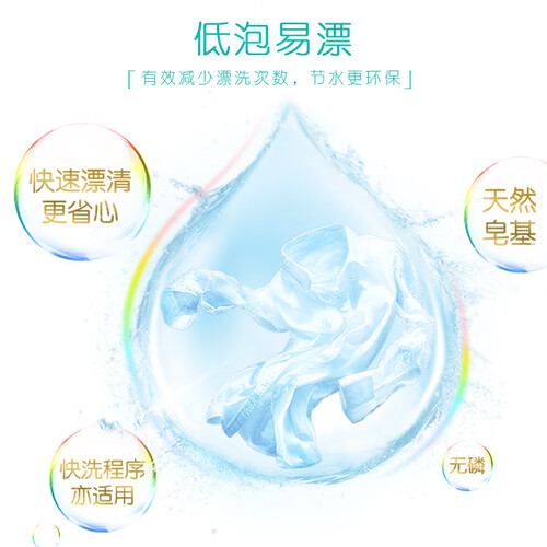 表面活性剂和生物酵素的双重结合,让此款洗衣粉拥有洁净去污能力的同时,还能保护衣物纤维,洗护合一更具实用性。