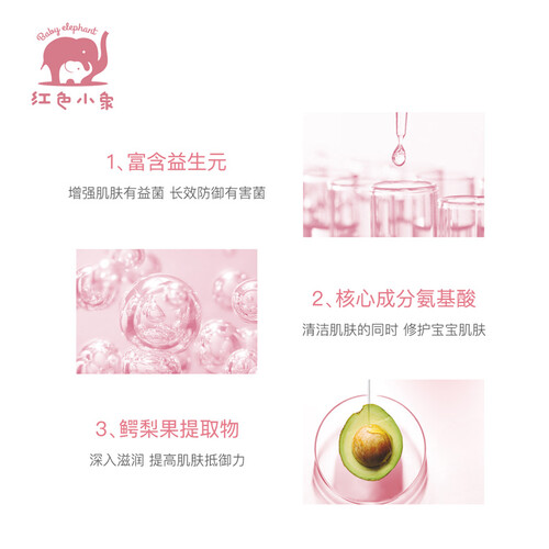 富含益生元,舒缓肌肤不适,维持健康活力,含氨基酸清洁配方,密切贴合,修复肌肤,含鳄梨果提取物,深入滋润,天然保湿。