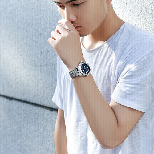 西铁城 深海蓝盘带夜光手表